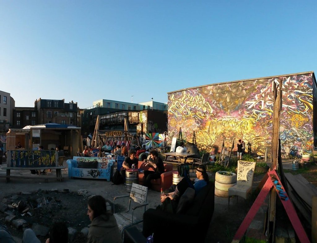 夏天傍晚,我和朋友來到這,兩個人揣著啤酒也沒特別想融入人群,就靠著髒污不堪的沙發上,靜靜地看著天色漸漸隱沒,將遠處金融區的大樓納入懷中。遠方汽油桶升起營火,是都市把我們放逐亦或我們放逐了都市,誰都說不清了。