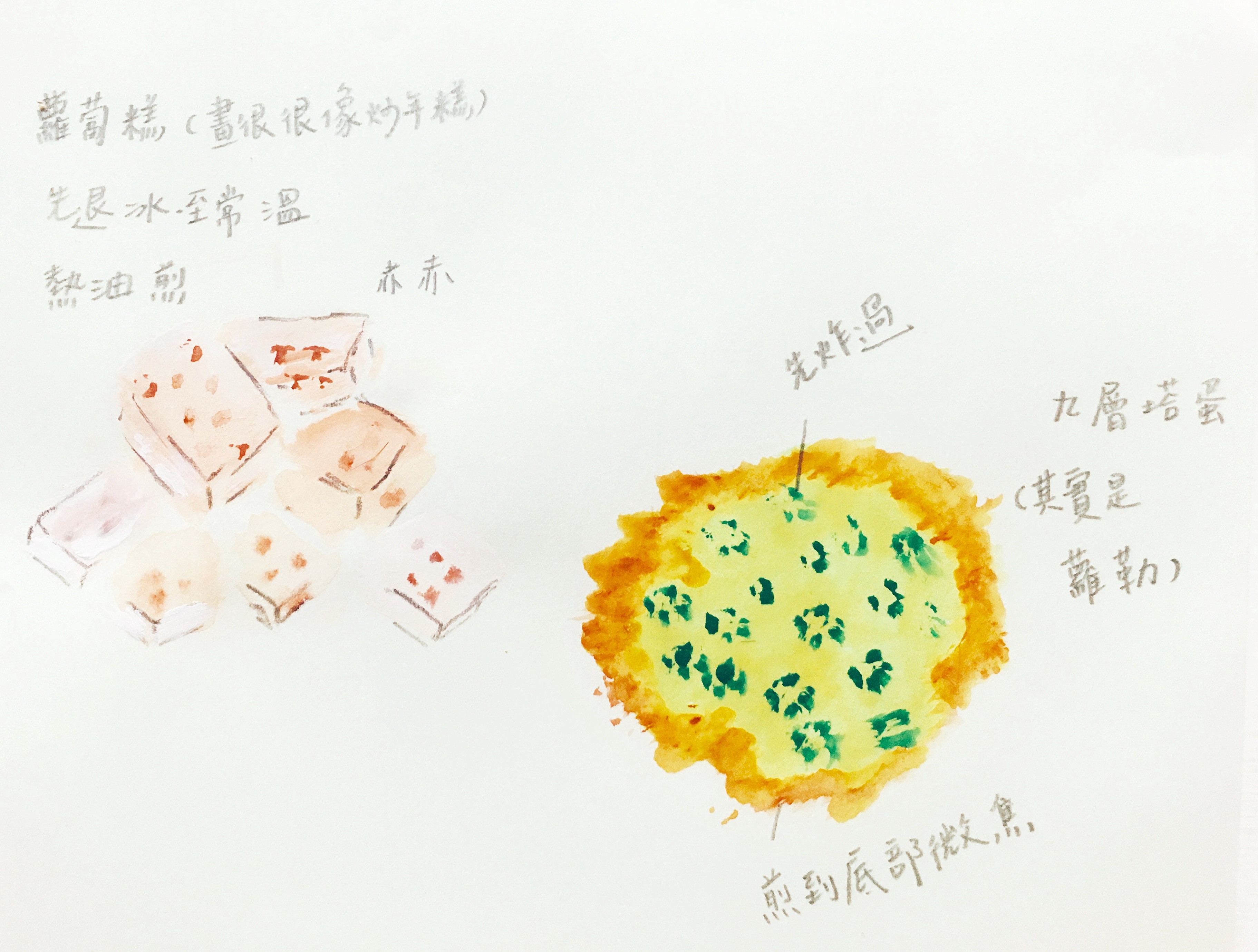 主菜稍微麻煩點,但還是能找機會偷懶。中國城內有家河粉廠,他們當日現作的蘿蔔糕雖然不比家鄉味但依舊冠絕倫敦,煎得赤赤上桌英國人讚不絕口,直稱蘿蔔糕完美揉雜垃圾食物的香氣但又富含蔬菜讓人毫無罪惡感(他們到底要對別人家鄉菜沒禮貌到什麼地步)