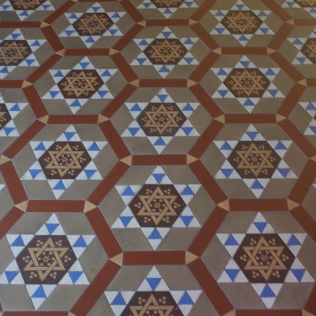 這棟有著暗紅色穹頂的純白花園豪宅是折衷主義風格建築,正面立面由上往下揉雜了愛奧尼亞與多力克兩種風格,側面則的柱子則仿造科林斯風格。1918年「麵粉大王」榮宗敬從德國籍猶太富商手上買下華邸並更名「榮宅」前,陝西北路已經是猶太人重要據所,富裕的伊拉克猶太家族Sassoon Family (沙遜家族)還在這蓋了拉結會堂奉獻主也紀念亡妻。榮宅第一任主人的遺風悄悄隱藏在宅邸中,一樓入內地磚上典型的大衛之星圖樣與二樓榮家小姐突出的陽台地磚也是馬賽克繽紛六芒星,皆彰顯了猶太家族的文化血緣。