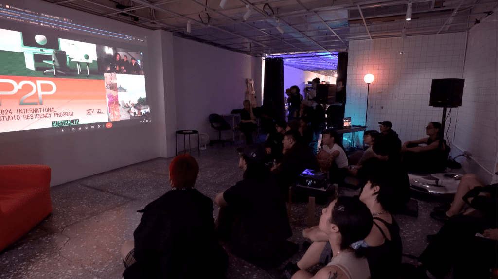 新媒體藝術團隊 NAXS STUDIO在2023年帶著混種作品「Body Crysis 身體災變」至澳洲首屈一指的ACMI(澳洲動態影像中心,Australian Centre for the Moving Image)演出,不只受到在地觀眾好評,也藉此機會與澳洲當地數位藝術社群接軌,因此又在年末將作品帶回台北實驗派對場域FINAL演出,順便也把澳洲藝術團隊PSEUDO撈了過來。PSEUDO在台北兜兜繞繞,驚嘆著蓬勃的台北數位藝術社群,特別是彼時台灣有兩個數位藝術中心,但澳洲最大的數位藝術場所ACMI卻沒有聚焦在新媒體的資源。兩方討論之下,興起了舉辦「P2P 2024 臺灣-澳洲跨工作室進駐計劃 」的念頭。